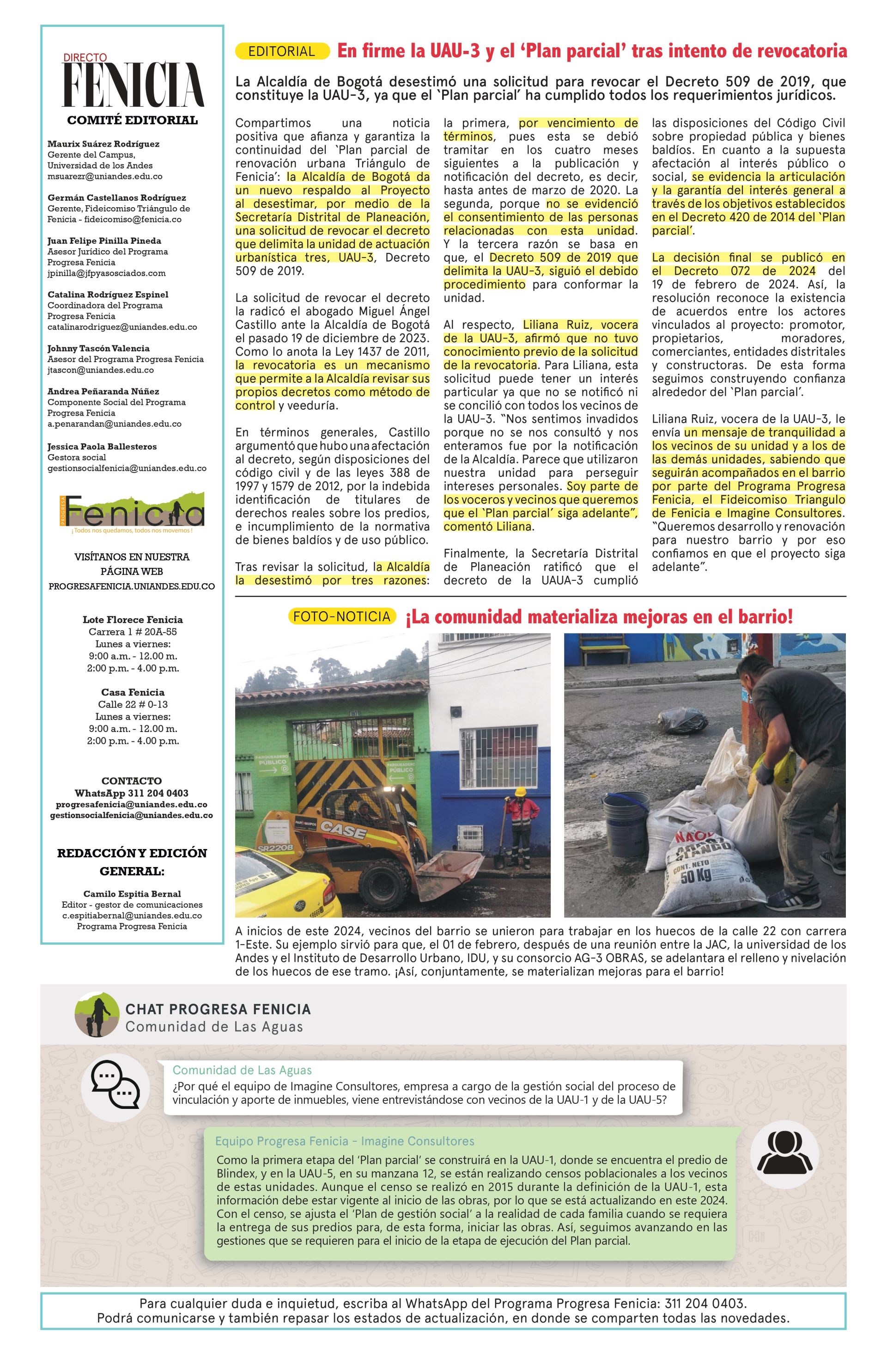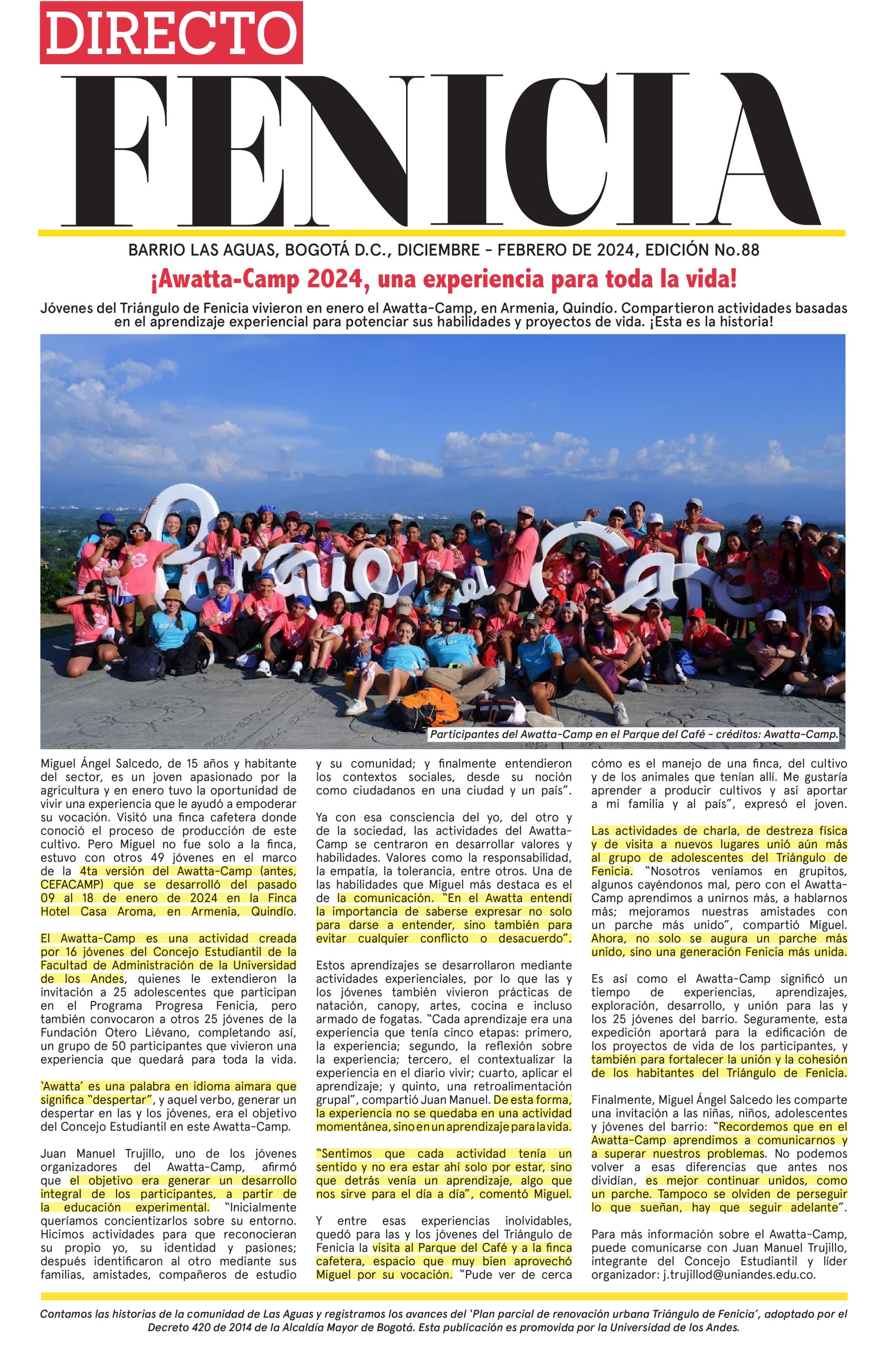 ¡Llegó una nueva edición Directo Fenicia!; la edición 88 de diciembre - febrero de 2024. Puedes reclamar tu ejemplar físico en el contenedor Florece Fenicia, en la carrera 1 # 20A - 55. ¡Te esperemos!